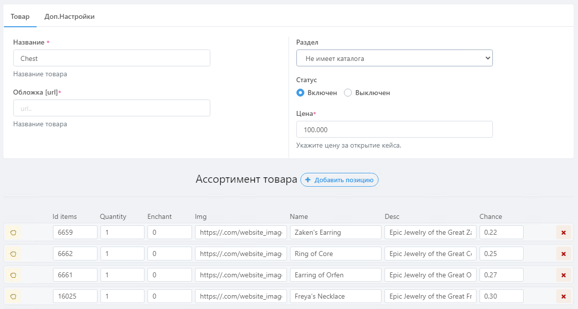 Интерфейс настроек прост. Если вы уже работали с плагином Магазин, то настройка не вызовет проблем.